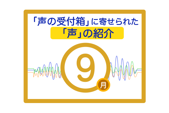 「声の受付箱」に寄せられた「声」の紹介です。9月分